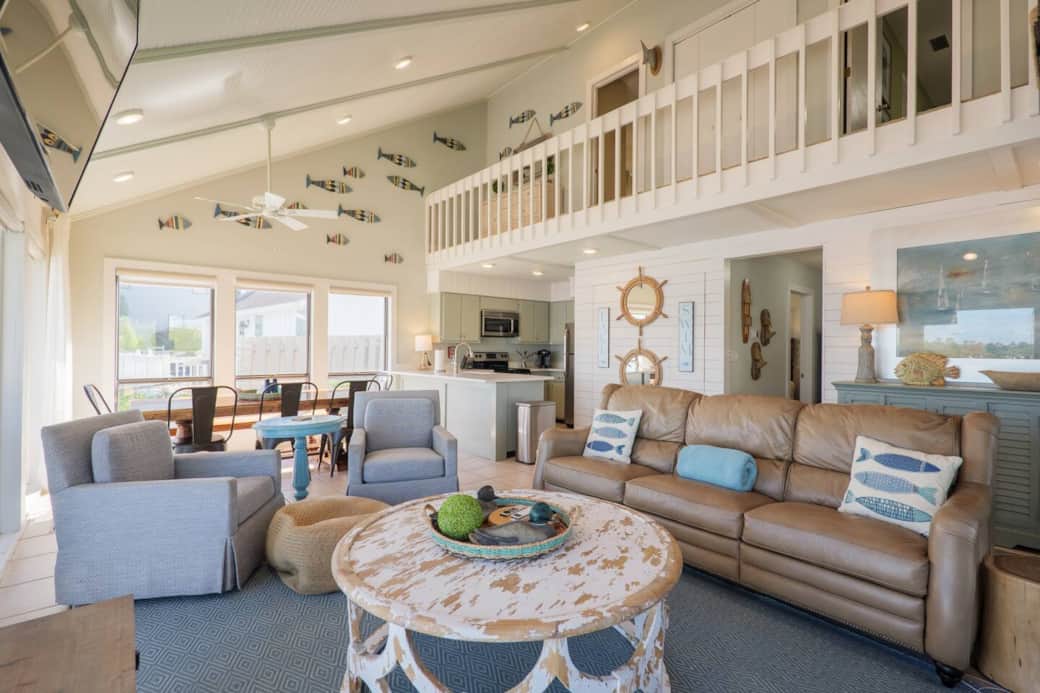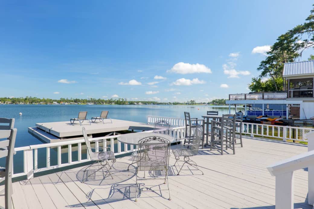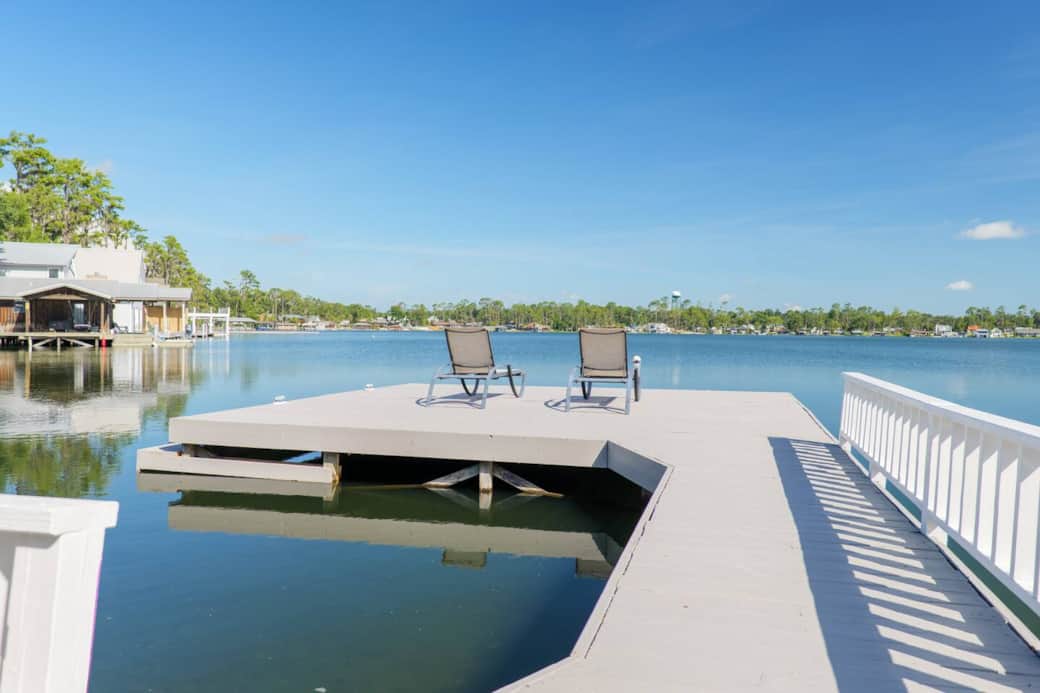 Soak in sweeping lake views from sunrise to sunset at this charming lakehouse. Launch your boat from the private ramp or glide across the water in 2 complimentary kayaks. Gather in the main room’s wall-to-wall windows framing the lake, or fire up the propane grill on the dock for a waterside feast. With 4 smart TVs, cozy lakehouse décor, and a walk-to location for dining, drinks, and essentials—this is lake life at its best. Sleeps 8.